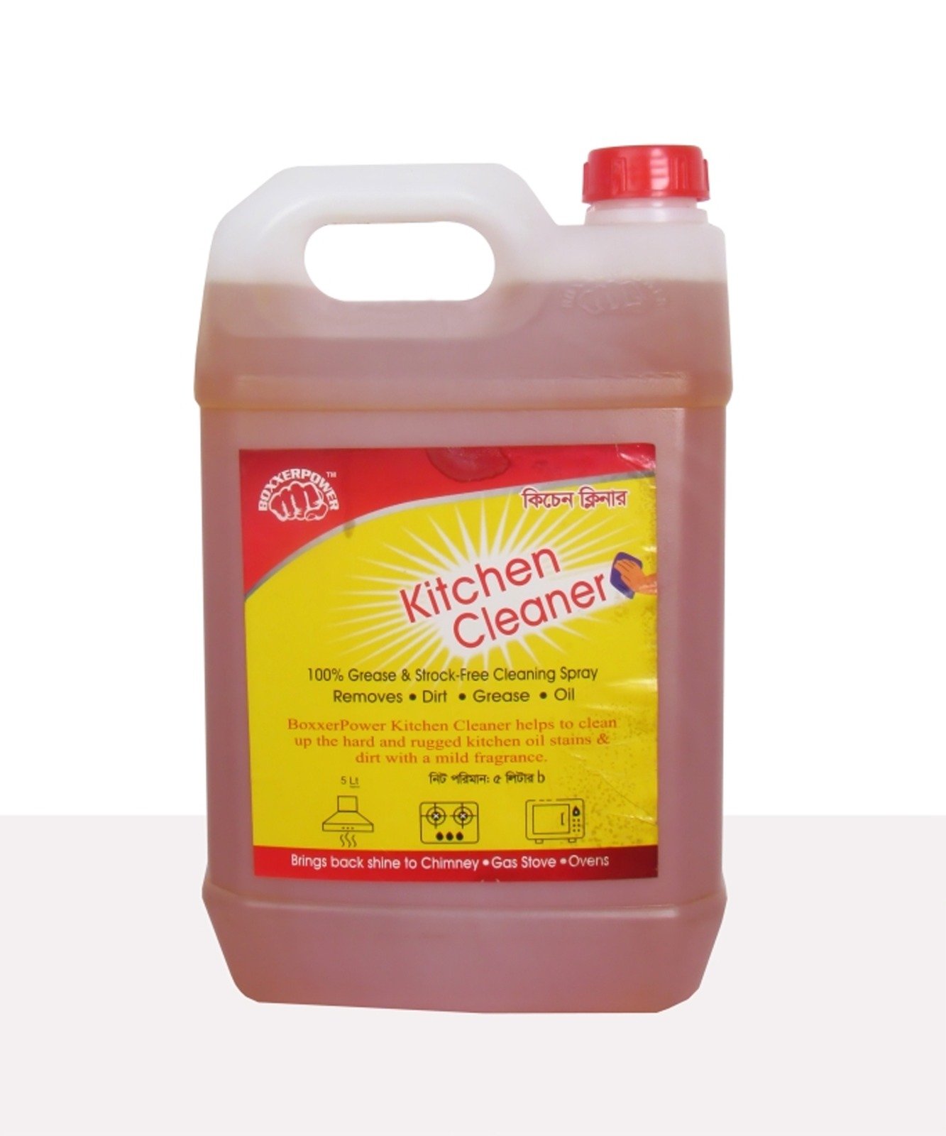 Boxxer Power Liquid Kitchen Cleaner (5L) ​Grease Fighter: A powerful solution designed to tackle tough kitchen grease and grime. ​Multi-Purpose: Safe for use on countertops, sinks, and stovetops. ​Pristine Finish: Effortlessly removes stains while leaving surfaces sparkling clean. ​Hygienic: Say goodbye to stubborn residue for a fresh and healthy kitchen. ​Standard: 500ml yellow liquid; BSTI approved.